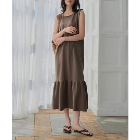 ゆとりはありつつ身体のラインが響かないIラインシルエットが大人っぽく上品な佇まいに。