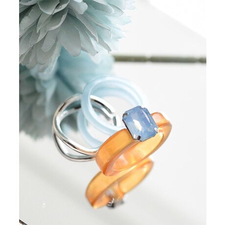 透明感のあるきれいめビジューリングとやさしいパステルカラーのアクリルリングにシンプルデザインでどんなコーデにもつけられるシルバーリングを合わせた3点セットになります。