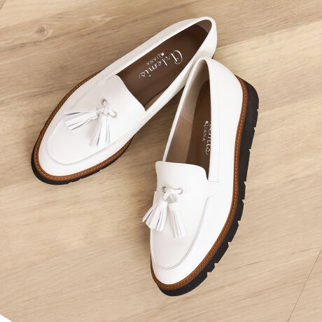 軽量ソールを使用した大人気の厚底ローファーシリーズに、春夏らしい明るいカラーが仲間入り。