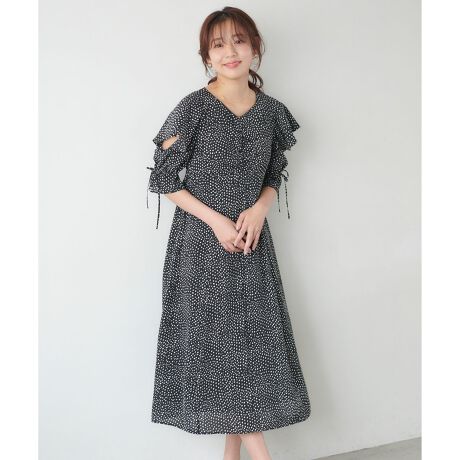 さり気ない肌見せが大人可愛い。“モノトーン”ドットプリントワンピース