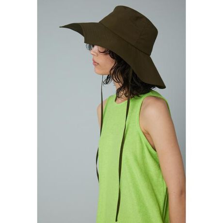 ワイドブリムが春夏のコーデの引き立て役にピッタリ。日差し対策にもファッションのアクセントにも活躍してくれます。軽さの中に適度なハリと強度を持ち、濡れても型崩れしにくく乾きやすい特性のある生地を使用しており、フロントのブリム部分のスクエアデザインは日除けをしながらも前方が見やすくなるようにしました。バランスが良くなるようにシルエットとボリュームにこだわっています。夏に大活躍のHATに仕上がりました。Square brim hat(スクエア ブリム ハット)