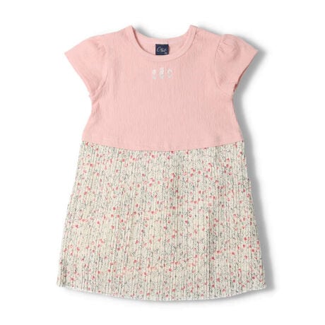 女の子らしい小花柄のふんわりシフォンのプリーツスカートがポイント!夏のお出かけにオススメな半袖ワンピース。【アイテム】半袖 トップス シンプル ガーリー フェミニン カジュアル お洒落 オシャレ かわいい 可愛い 普段着 デイリーウェア お出かけ着 お外着 お外遊び着 子ども こども 女児 女の子 ガールズ キッズ ベビーサイズ トドラーサイズ 幼稚園 保育園 小学校 通園 通学 小学生 2023年夏物新作 丸高衣料 フラワー お花 ラベンダー 薄紫色 ピンク オフホワイト 白色 クレセント