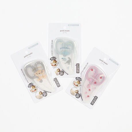 離乳食期に大活躍するフードカッターです。カーブした刃先で切りたい食材が逃げにくく、使い勝手の良さが特徴。テーブルにおいても刃先がつかないのもうれしいポイントです。プティマインで人気のモチーフを描いたケース付きで、持ち歩きにも便利なアイテムです。