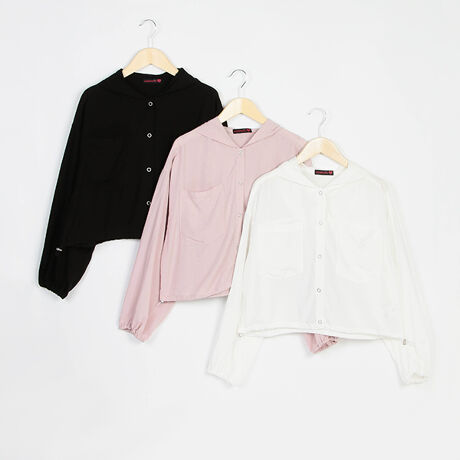 シアー素材を使用したシャツブルゾンです。フードつきのカジュアルなデザインで、着まわしやすさ抜群。ゆとりのあるシルエットにしており、インナーを問わず合わせやすいのも特徴です。裾のドローコードを調節してフォルムに変化をプラスしたり、ゴム入りの袖を少しまくってふんわりしたスリーブを作ったりと、いろいろなアレンジが楽しめます。【透け感】やや透ける【生地の厚さ】薄い【伸縮性】なし【裏地】なし【ポケット】あり