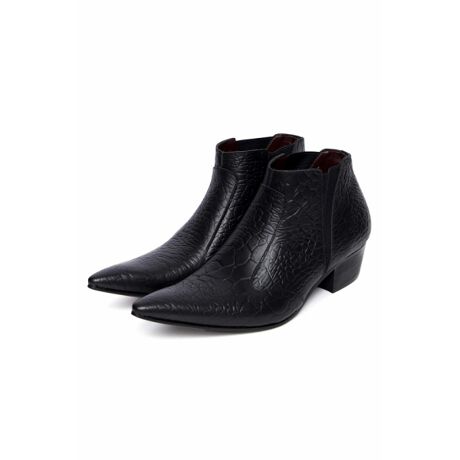 アニマル柄エンボス加工のポインテッドサイドゴアブーツ。