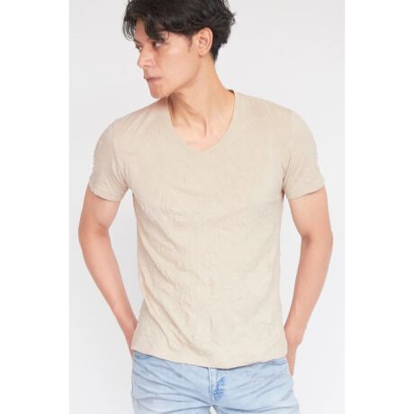 涼しげな印象を与えるキャッチワッシャーVネック半袖カットソー。