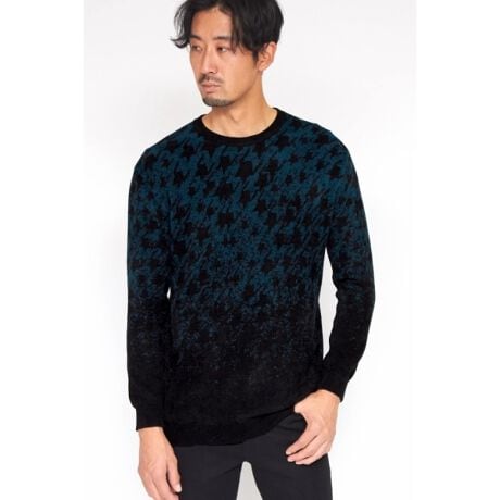 HIGH STREET∴グラデーション千鳥柄モールクルーネックニット