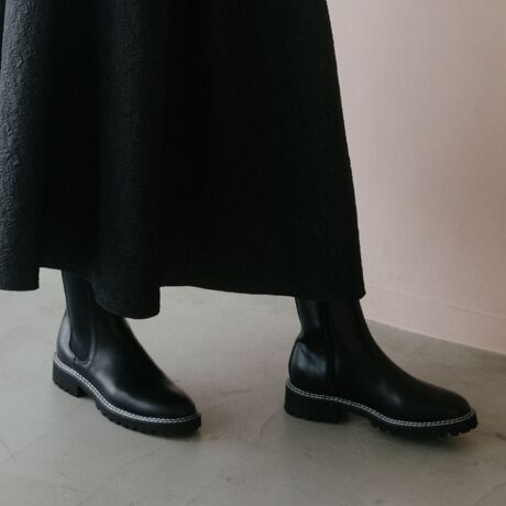 取り入れるだけで秋冬のコーディネートを完成させてくれる定番のサイドゴアブーツ。程よいボリューム感が今っぽく、ホワイトステッチがアクセントになり、シンプルすぎず他と差をつけられる1足に仕上げました。足首周りはやや細めに設定することで、メンズライクな印象になりすぎず、すっきりしたシルエットで履いていただけます。内側にファスナーを設定したので着脱も楽にできるところも嬉しいポイント。コーディネートに取り入れやすく、上品な印象があるので大人の女性にもおすすめです。