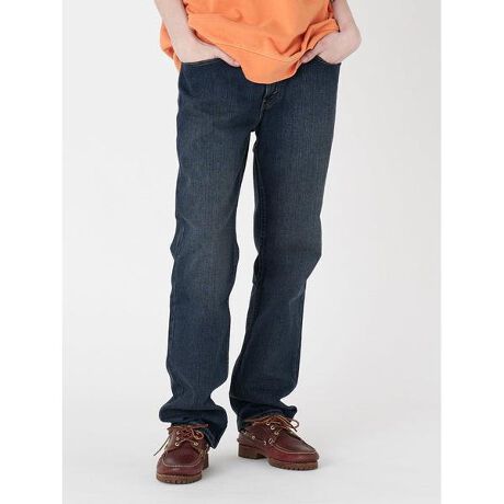 Levi's□の定番のストレートジーンズの一つの514。505□よりも若干股上が浅めの作りのストレートシルエットでスッキリとした印象を与えてくれます。色落ち加工により自然で雰囲気のあるアタリが表現されていています。綿100%なのでジーンズらしい生地感を十分に感じて頂ける一本です。