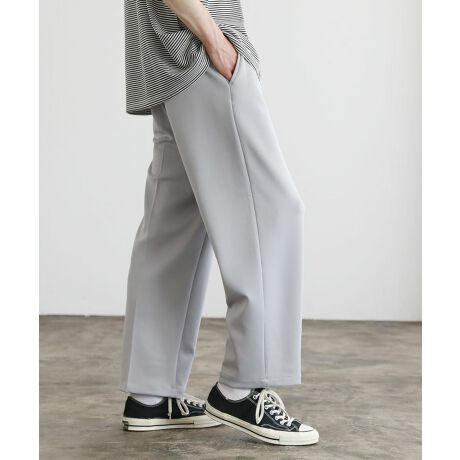 ゆったりとしたルーズシルエットが魅力のワイドスラックス。センタープレスが入っており、キレイなシルエットに仕上がっております。ウエスト後ろにゴムが入ったイージパンツ仕様。夏に嬉しいドライタッチなポンチ生地で、伸縮性に優れており楽な着心地が魅力。ほんのりと光沢感があり、シンプルなアイテムながら1枚で上品でキレイめな印象を与えてくれます。