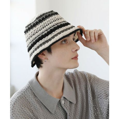 クロシェ編みライン入りバケットハット