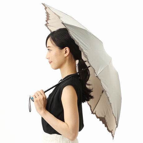 骨の一部にカーボンを使用している軽量折り畳みミニ傘です。8本骨にする事で張りが美しく、遮光面積も広いため人気のタイプです。生地も軽量ですので快適に持ち運びしていただけます。繊細なアンティーク風のレトロな裾刺繍にはさりげなくGDマークが入っており、上品で日常使いにもぴったりです。明るめベースカラーに刺繍の強すぎないアクセントで若々しさを演出しています。手元も軽量タイプで、GDロゴのメタルがポイントになっています。99%以上遮光、99%以上のUV遮蔽率、遮熱効果があり、日傘そして雨傘としてもご使用いただけます。