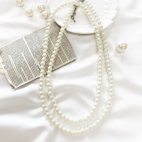 [型番:pn272]6mmガラスパールのロングネックレス。単品使いでシンプルに、二重にしてボリュームアップ、お手持ちのネックレスと重ね付けしてカジュアルめになど、様々なコーデやシーンに使いやすい万能アイテム!ひとつ持っておけばコーデの幅がグッと広がります♪