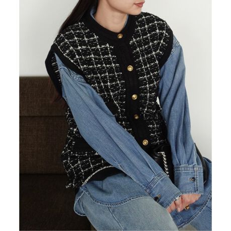 ヒップ回りが隠れる丈のクラシックムードなクルーネックベストです。
