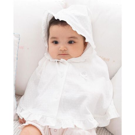 清らかでシンプルなホワイトのマントは何にでも合わせやすいので、サイズ選びに迷うギフトにもおススメです。