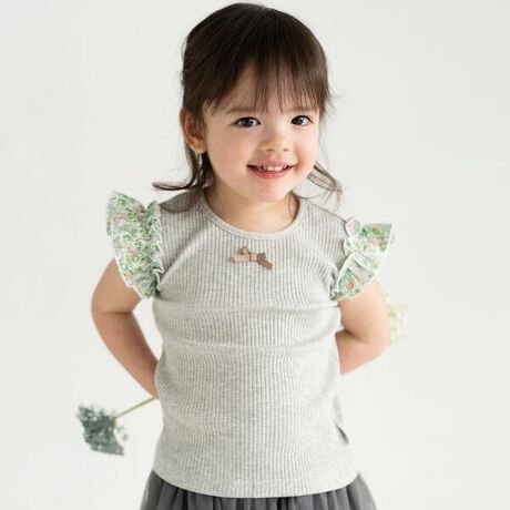 お袖のフリルが布帛の花柄で女の子らしくcute♪