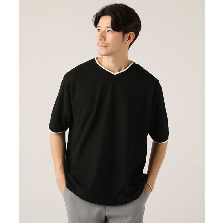 <ALLOWED TO UNFOLD>コードダブルフェイスフェイクレイヤードVネック半袖カットソー