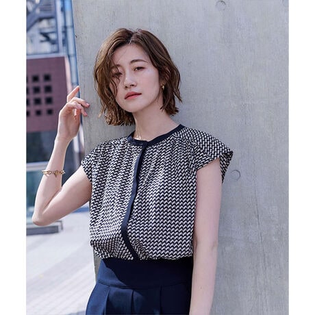 ジオメトリック柄の二色は着るだけで主役になる一枚。