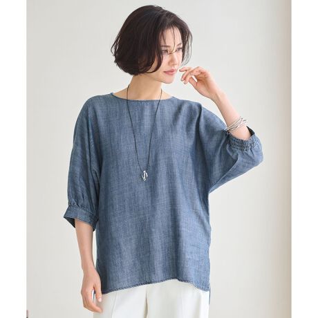 【洗える・XSサイズあり】テンセルリネンデニム ブラウス