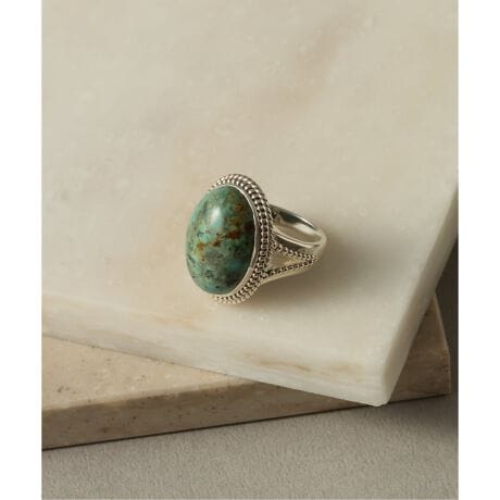 斑点模様が入った独特な印象のアフリカンターコイズをあしらったリング。