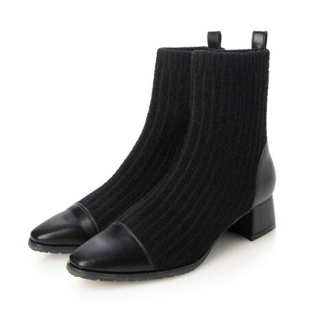 私は足長が23.2cmなのでMサイズだといつも少し余裕がありますが、ゆったりした履き心地が好きなのと、ブーツの場合ソックスで合わせることがほとんどなので普段Mサイズを着用します。こちらはニット素材なのでソックスで合わせても楽に履けるくらいゆとりがあります。ポインテッドトゥですが幅が広めなシルエットなので、幅広の方や外反母趾の方にもおすすめ。ニット素材は柔らかいながらも程よく張り感があり、足首周りもしっかりフィットしてくれます。太めのローヒールで安定感もあり、疲れやすさを感じにくいブーツです。【チャットで気軽に相談】