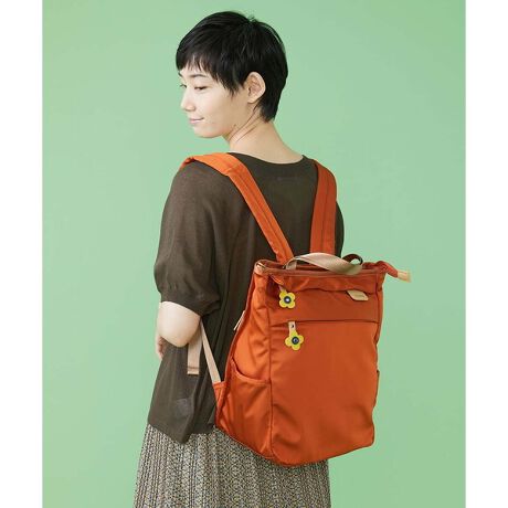 機能性抜群の、A4サイズがすっぽり入るリュック。スポーティーカジュアルなポリエステル素材でお仕立てしました。使い勝手の良いスクエアフォルムでトートバッグとしてもお使い頂ける便利な2WAY仕様。ファスナーの引き手に付いたさりげないフラワーモチーフがホコモモラならではのワンポイントになっています。両サイドのポケットには傘やボトルなど、外側の上ポケットは深さが浅い為小物を入れるのに便利です。脇のファスナーから中の物を取り出せるのもポイント。ポケットやメイン収納の裏地にはPOPで可愛らしい花柄を合わせ、ちらりと見えるたびに気分を上げてくれます。