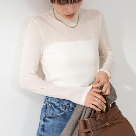 ・レイヤードスタイルに活躍するテレコ素材のハイネックインナー