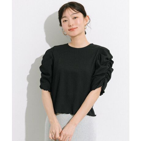 シャーリングのディティールで素材感も楽しめるメロウトップス