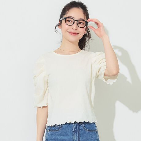 シャーリングのディティールで素材感も楽しめるメロウトップス