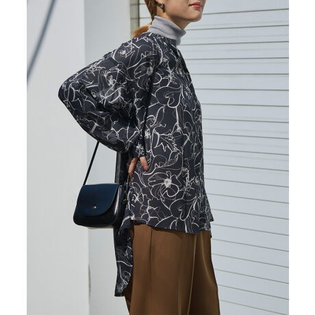 動くたび軽やかに揺れるシアー生地が美しく、総柄でも柔らかな印象に。