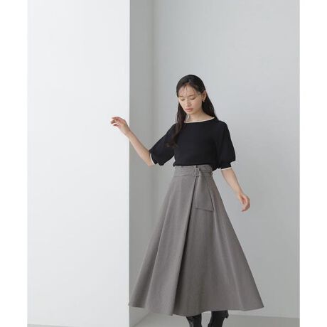 [design & styling]ダークトーンのミニギンガム柄がクラシカルな雰囲気ながら、ふんだんに取ったボリューム感が今シーズンらしいシルエットのフレアスカート。アシンメトリーな巻きスカート風のタックと、共布くるみバックルのサッシュベルトがスタイリングのアクセントになります。ウエストから腰まわりにかけてスッキリと仕上げ、後ろウエストにゴムを通しているので、美シルエットをキープしつつ着心地も抜群の1枚です。フロントタックの内側にファスナーをつけ、ウエスト釦で留める仕様です。前ファスナーで着脱[fabric]ミニギンガム柄の凹凸感のあるサッカー素材を使用。※裏地あり※モデルの着用画像の場合、光の当たり具合により、実際の色味と異なって見えることがございます。色味は、商品単体の画像をご参照ください。