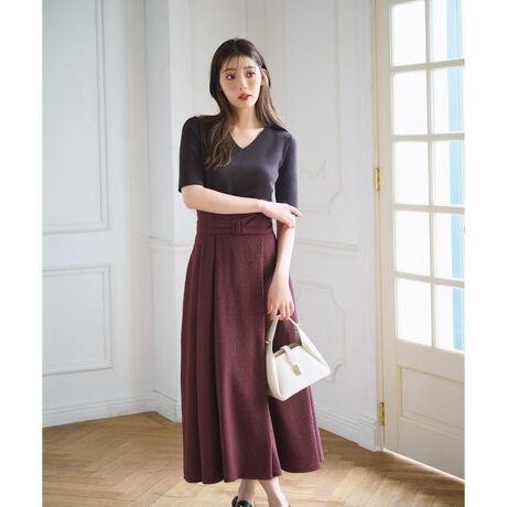 [design & styling]ダークトーンのミニギンガム柄がクラシカルな雰囲気ながら、ふんだんに取ったボリューム感が今シーズンらしいシルエットのフレアスカート。アシンメトリーな巻きスカート風のタックと、共布くるみバックルのサッシュベルトがスタイリングのアクセントになります。ウエストから腰まわりにかけてスッキリと仕上げ、後ろウエストにゴムを通しているので、美シルエットをキープしつつ着心地も抜群の1枚です。フロントタックの内側にファスナーをつけ、ウエスト釦で留める仕様です。前ファスナーで着脱[fabric]ミニギンガム柄の凹凸感のあるサッカー素材を使用。※裏地あり※モデルの着用画像の場合、光の当たり具合により、実際の色味と異なって見えることがございます。色味は、商品単体の画像をご参照ください。