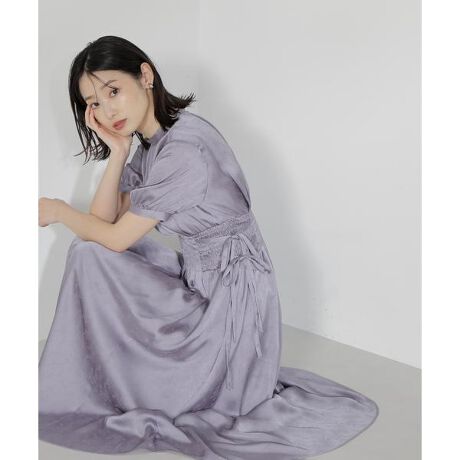 [design & styling]ウエストに太めのタックと、サイドにシャーリング&ダブルリボンを施しデザイン性のあるワンピース。小花柄のジャガード素材はほんのりと光沢感があり、上品で女性らしい印象に仕上げています。オフィスやデイリーにはもちろん、華やかなフォーマルシーンにもおすすめです。後ろファスナーで着脱[fabric]柔らかく落ち感のある素材を使用しています。※裏地あり※モデルの着用画像の場合、光の当たり具合により、実際の色味と異なって見えることがございます。色味は、商品単体の画像をご参照ください。