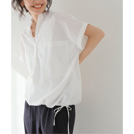 清涼感のある麻混の素材でおつくりしたフレンチスリーブのスキッパーシャツ。