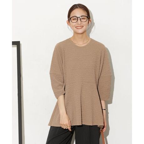 シーンレスで着映える膨れジャガード素材のカットブラウス。トレンド要素を盛り込んだランタンスリーブとペプラムシルエットが、女性らしさとスタイルアップを実現。華やかな見た目ながらも着心地がラクなカットソー素材で、ワードローブに追加しておくと頼れる1枚です。