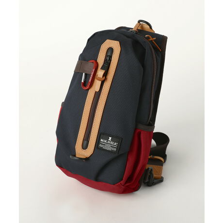 耐久素材で作られたボディーやブランドロゴが入ったカラビナなど、スポーティーさやアウトドアの要素を持つアイテムですが、フロントのジップまわりやベルト先端部分など要所要所にヌメカウレザーを使用しており、さりげなく高級感を感じさせるデザインです。スポーツ、アウトドアシーンからタウンユースまで、幅広い場面でご着用いただけます。