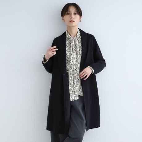 着用時にジャケット使いできるきちんと感を目指したパターンにこだわり、着心地はカーディガンのようにラクな一枚。