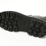 モカシンタイプのつま先(モックトゥ)を持つワークブーツをデザインソースにエレガンスな印象に仕上がるようにデザインラインをまとめた1足。