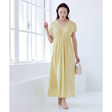 前後Vネックデザインが大人な雰囲気のワンピース。