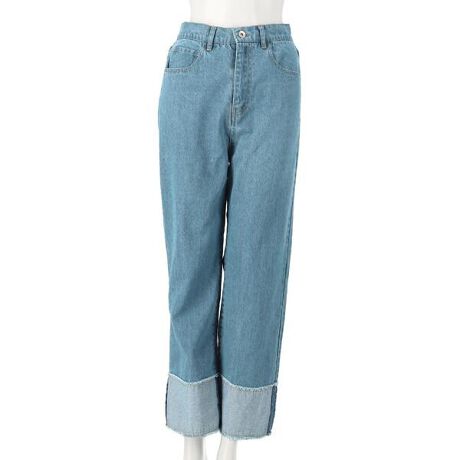裾のカットオフデザインが穿くだけでおしゃれ映えするロールアップデニム。