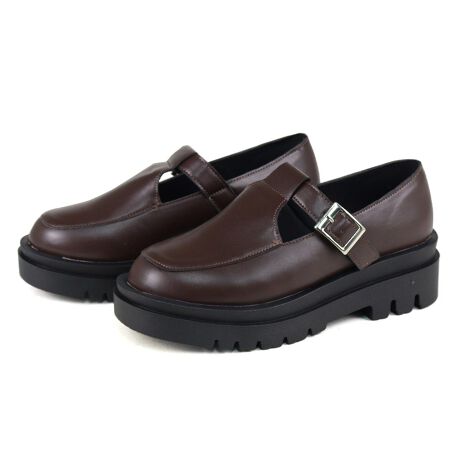 Tストラップが足元をすっきりと見せ、靴下やタイツ合わせにもぴったりなオールシーズン使えるデザイン。