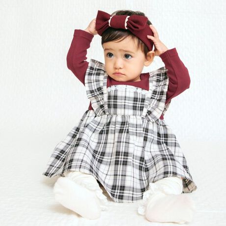 【ベビー】ジャンスカ重ね着風ドッキング長袖カバーオール