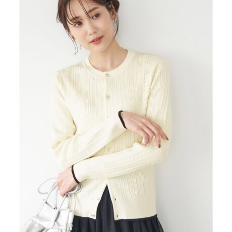 洗濯機OK・リンクコーデ/BIO GRACEミニケーブルニットカーディガン