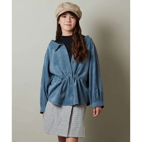 ・やわらかいコーデュロイ素材のシャツとカットソーインナーをドッキングしたフェイクレイヤードトップス。