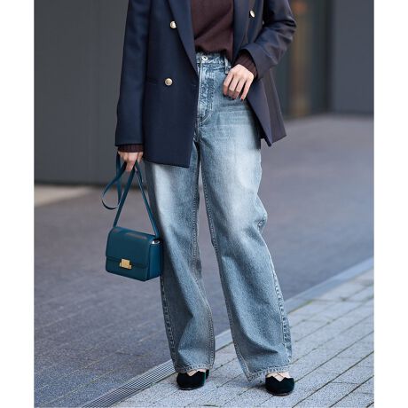 ウエスト、ヒップを四角くみせてくれる、ハイウエストできれいなワイドストレートシルエットは、バレエシューズや、パンプス、ボリュームスニーカーなど、足元を問わずバランスよく合わせて頂ける万能なデニムです。