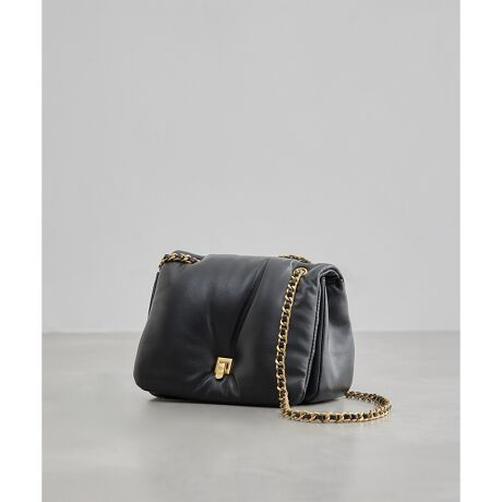 トレンドの中綿が入ったパフィーシルエットがポイントのショルダーバッグです。あえてキルト加工をせず、ふっくらとしたシルエットを強調したミニマルなデザインに仕上げました。オリジナルのロック金具はRPロゴをあしらっています。チェーンと金具はブラスカラーのコーティングを施すことで上品で高級感のある雰囲気に。
