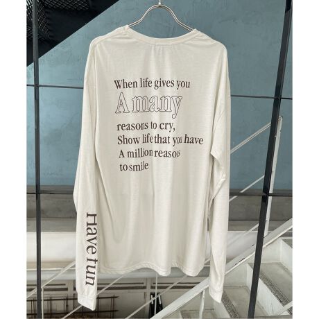 薄手で季節の変わりめにも取り入れやすく、ロングスリーブでも重たく見えず、ゆるっとしたサイズ感がよりお洒落見えな1枚。