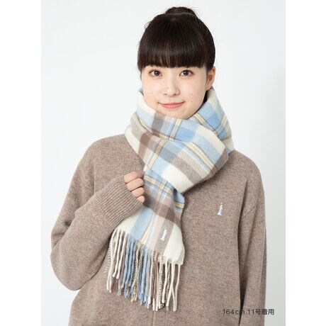 2トーンカラーの〈アイスショコラ女神〉の刺繍入り。人気の白ベースにミント系と杢グレーのチェックカラーです。柔らかく保温性に優れたラムウールを使用。イーストボーイのチェックスカートやコートとも相性抜群です。