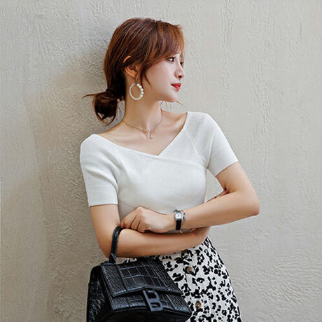ラップ風なデザインでデコルテからウエストラインまでスタイルよくみせてくれるトップス。短めの丈になっているのでフロントインしてももたつかないのも嬉しいポイント。オフショルダーっぽく見える半袖なので気になる部分もしっかりカバーできます。これ1枚でコーデがきまる便利アイテムです。■注意事項・お使いのモニターや端末により、質感・色合いが実際の商品と異なって見える場合がございます。・表記サイズは測り方によって1〜2cmの誤差が生じる場合がございます。ご了承くださいませ。