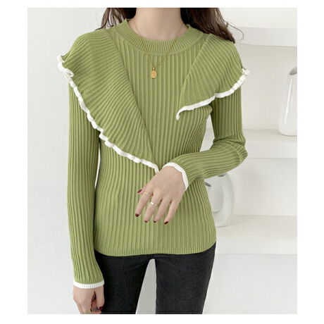 ランダムがお洒落フリルリブニットトップス